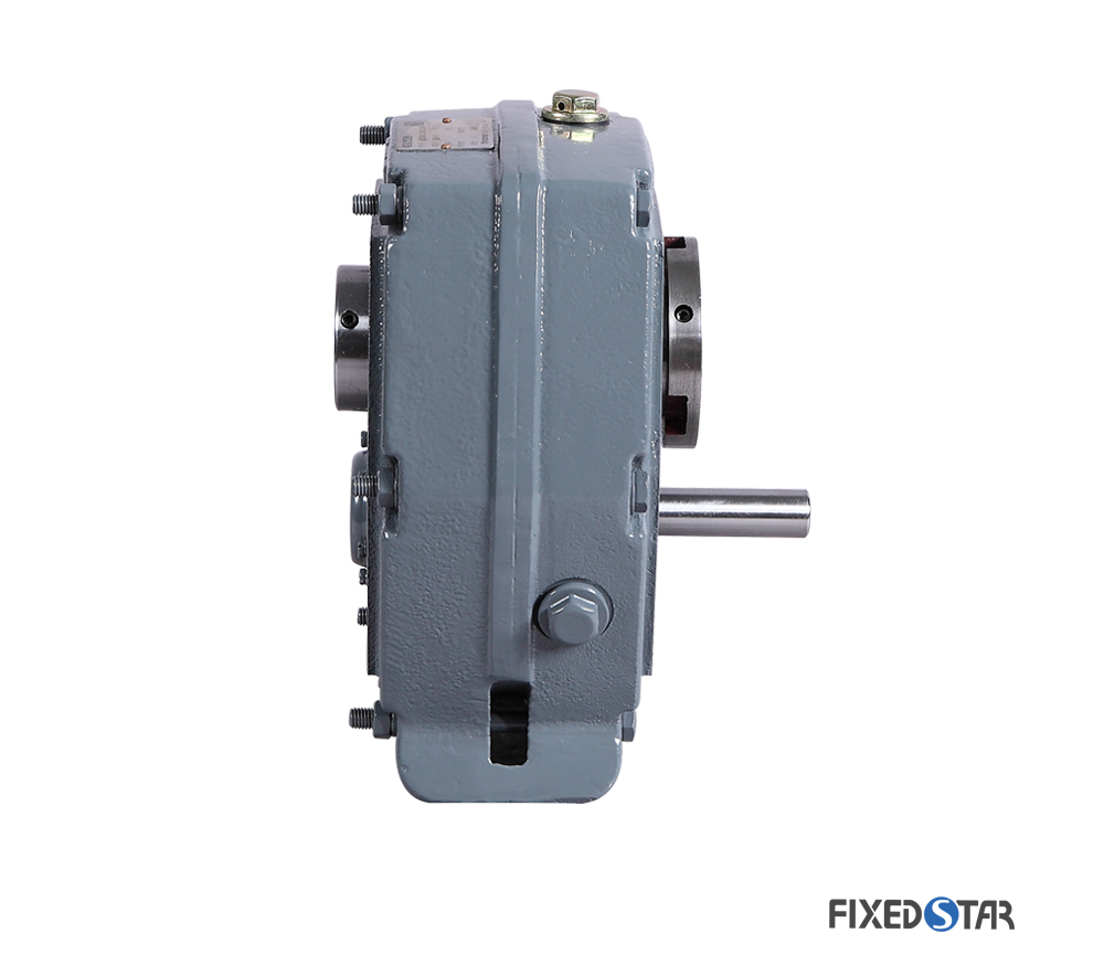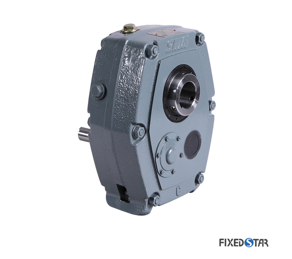 SMR、SMRY. SMR-R轴装式减速机结构紧凑,承载能力大,传动效率高(单级齿轮传动效率高达98.5% ),传动平稳,噪声低,性能可靠,广泛应用于矿山、冶金、.工程机械等行业.输出空心轴的两端均有锥度部分,使用各种不同的输出锥套可实现不同的输出孔大小,锥套孔符合ANSI美制标准,同时也备有ISO标准的公制直孔输出轴供客户选用.箱体采用高强度铸铁精密铸造,具有优良的减振缓冲击能力。齿轮采用高强度合金钢材料,渗碳淬火,磨齿工艺,渐开线齿形修形。逆止器可用于减速机不能反转的使用条件,扭力臂可用来安装调整减速机的空间位置及皮带的松紧。